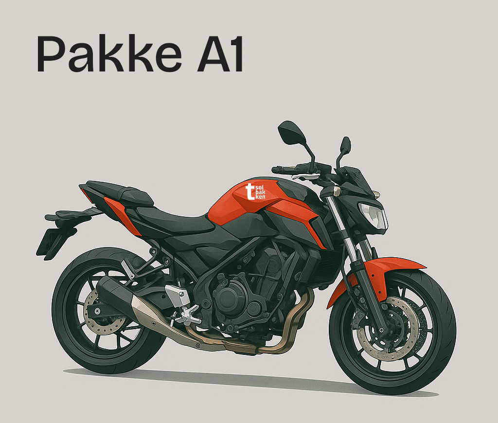 Med denne pakken får du en veldig god start på førerkort klasse A1 – inkludert kjøretimer og alle obligatoriske kurs. Perfekt for deg som vil starte MC-eventyret trygt og effektivt.